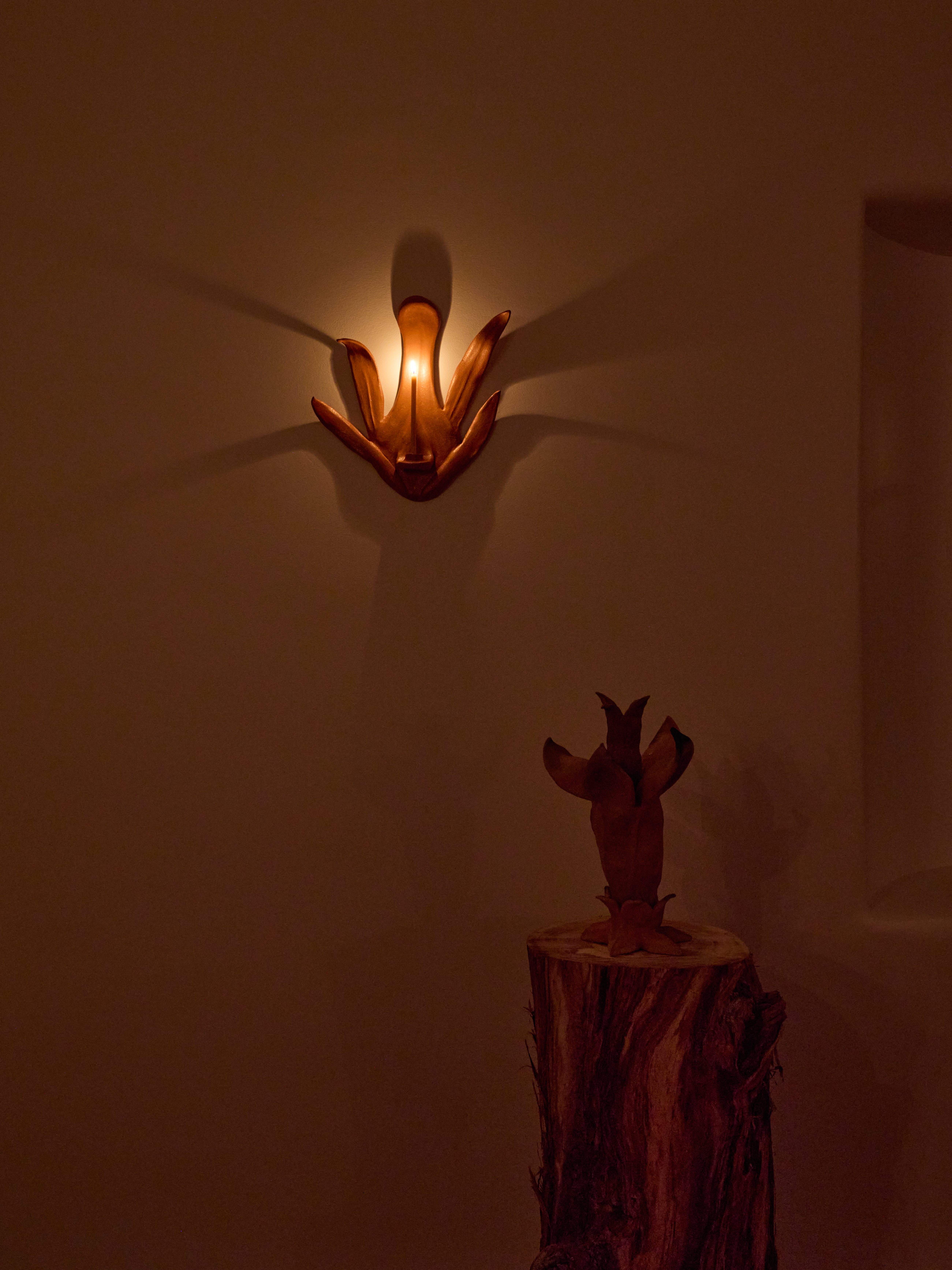 When night comes, warm light will flicker on earthen walls until the flames go out, then the sky will reveal itself. Infinite pin-pricks of light will encircle the dark. Movement will subside into stillness, impermanence left to dance in space, stamens and petals of flowers as big as elephants waving, waving in a soft rounded world without us.